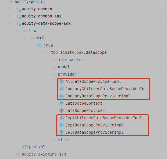 编写实现类,开发者在acuity-cloud或acuity-boot项目中编写数据权限的自定义实现类。